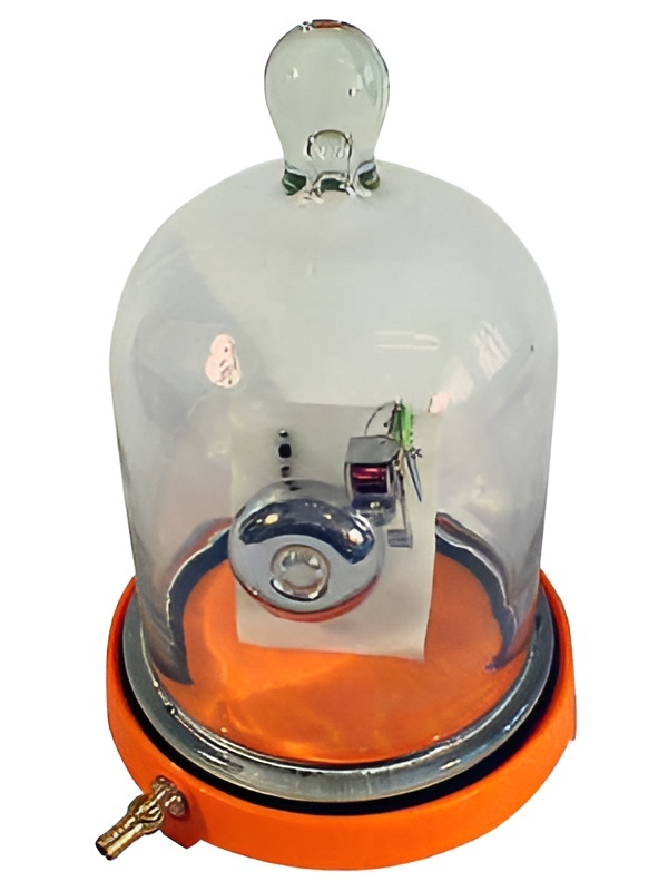 Тарелка вакуумная со звонком предназначена для демонстрации опытов в замкнутом объеме с разреженным воздухом. Используется с вакуумным насосом.