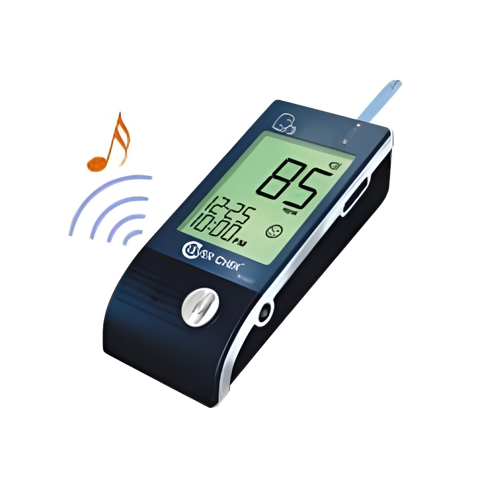 Глюкометр предназначен для определения уровня глюкозы (сахара) в крови в домашних условиях для слабовидящих и незрячих людей. Основная особенность — это способность сообщать результат измерения голосом. Глюкометр специально сконструирован для людей ослабленным зрением.
