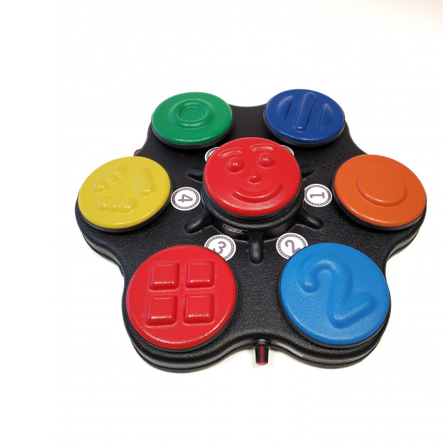 Игра «Круговая симфония» создана для адаптации детей с нарушенным слухоречевым восприятием, а также для детей, имеющих иные особенности развития. Представляет собой настольное устройство: на корпусе расположено 6 текстурированных кнопок разного цвета и рельефа. Изготовлено из высококачественного ударопрочного пластика, имеет обтекаемые плавные формы без острых краёв и углов.