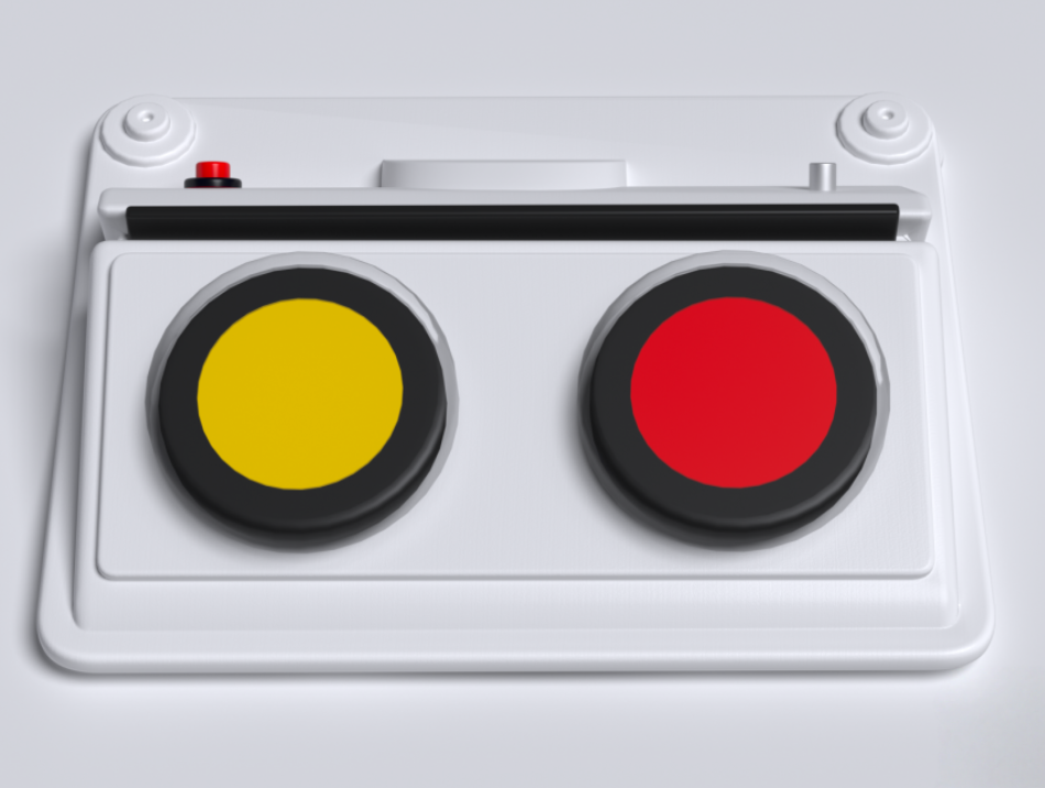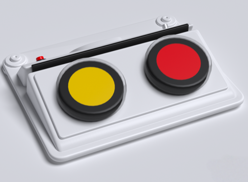 Игровой коммуникатор 2-х кнопочный со вставкой разработан специально для помощи в социализации детям, имеющим проблемы со слуховым, визуальным, тактильным восприятием и коммуникацией. Представляет собой корпус с плавным углом наклона, на котором размещены 2 кнопки для записи голосовых сообщений. Коммуникатор можно дополнять изображениями, которые помещаются в прорезь над кнопками. Устройство изготовлено из высококачественного ударопрочного пластика, имеет обтекаемые плавные формы без острых краёв и углов.