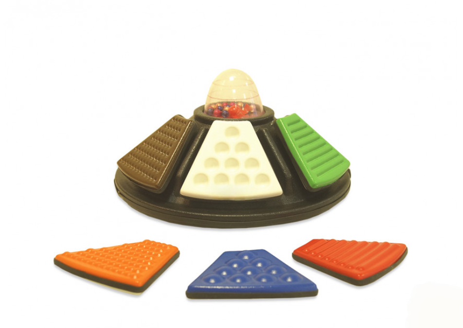 Текстурированная карусель – это игровой модуль, который представляет из себя аудио-визуальное устройство, с 6 съемными клавишами, разных цветов, разного рельефного рисунка на поверхности. Клавиши на устройстве можно нажимать, при активации какой-либо клавиши, будет воспроизводиться мелодичный, звуковой сигнал, который в свою очередь сопровождается визуальным эффектом (мерцанием огоньков на корпусе устройства). Питание устройства осуществляется от батареек типа АА.