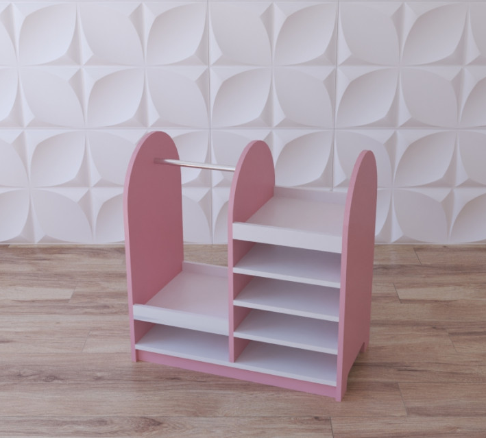 Гардеробная может использоваться либо как часть оснащения для игровых групп в садиках и яслях (как гардеробная для кукольных одёжек), либо же как полноценный гардеробный шкафчик - на ней вполне отлично поместятся и наряды для самих маленьких модниц младшего дошкольного возраста – а значит, ей вполне может быть место и в прихожей, и раздевалке, и даже детской комнате.