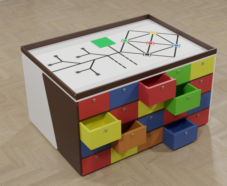 Стол этой модели предназначен для конструирования и робототехники детьми от трех лет. Стол поможет на кружках по робототехнике, различных онлайн уроках по изучению и конструированию роботов. Также он будет крайне полезен для детских садов и центров реабилитации, которые занимаются проведением занятий по раннему конструированию.