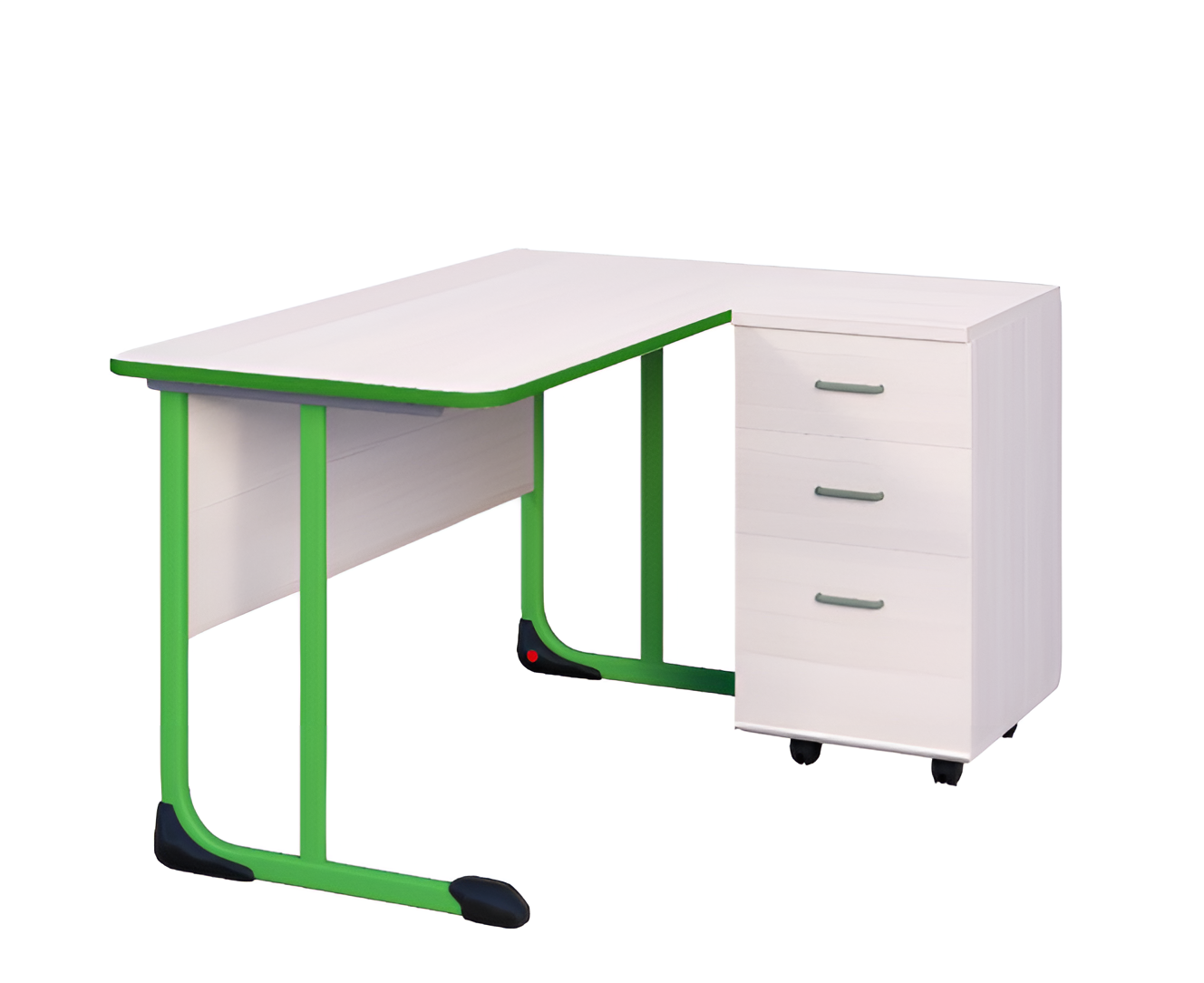 Стол учителя с тумбой из металлического каркаса, крышка стола и тумбы из ЛДСП, кромка антивандальная полиуретан, имеется царга и кромка ПВХ.