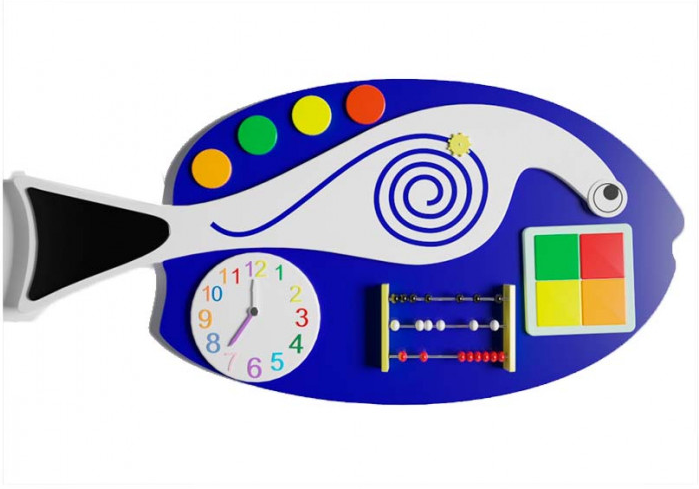 Многофункциональная доска для детей будет интересна малышам и детям постарше. Благодаря развивающей игрушке ребёнок быстрее познакомится и освоит мир вокруг себя. Форма и изображение рыбки познакомит малыша с подводным миром. Благодаря производителю доска безопасна и не имеет острых углов, не оставляет заусенцы на коже малыша. Недорогой бизиборд можно купить для дома, для детских центров, детских садов, для ресторанов и клиник.