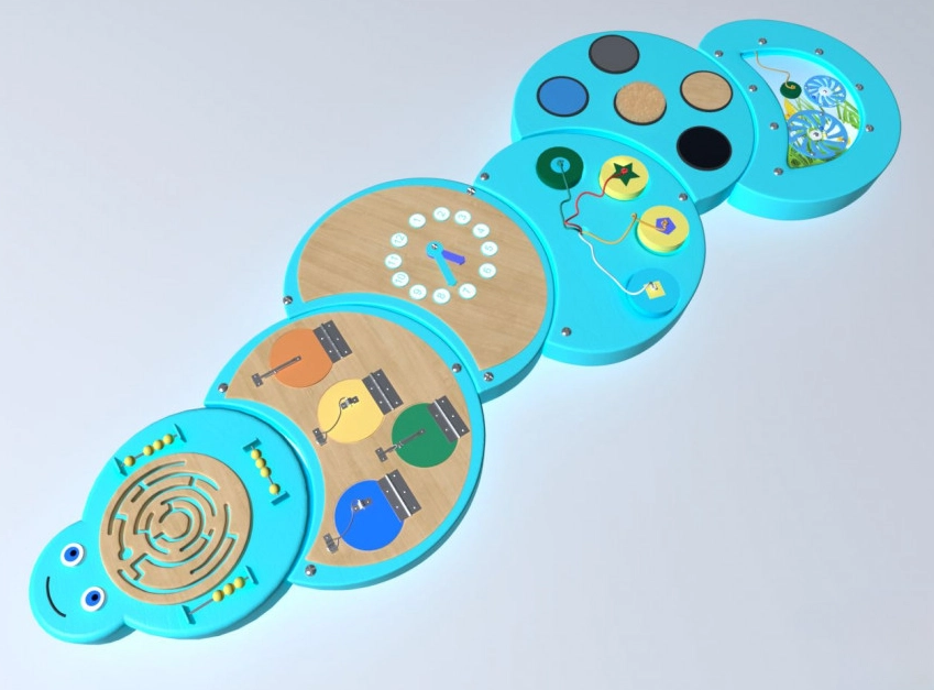 Развивающая панель в виде гусеницы - это красивая игровая зона, выполненная из качественных материалов и не оставляет зацепок в детских ручках. Настенная многофункциональная доска состоит из различных увлекательных зон. Она будет интересна и увлечет в игру детей разных возрастов. Форма и изображение гусеницы познакомит ребенка с миром насекомых. Состоит из 8 разных частей ее тела. Множество замков, тактильных зон, лабиринтов и шестеренок увлекут детей любого возраста. Развивающая панель Умная гусеница заинтересует как маленьких детей, так и постарше, а родителям поможет сохранить дом в целости и сохранности. Она подойдет для домашнего использования и для специальных учреждений.