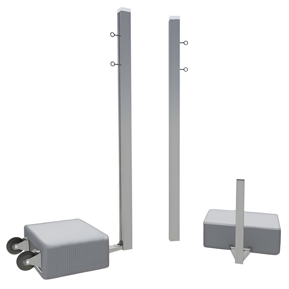 Бадминтонные стойки из алюм. квадратного профиля 80х80 мобильные с противовесами, на колесах