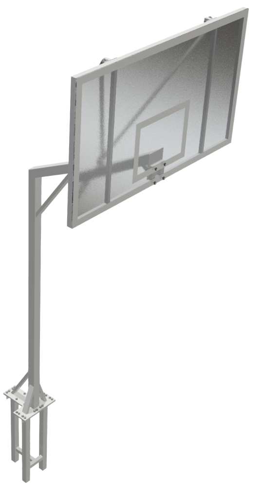 Стойка баскетбольная Г-образная стационарная устанавливается на уличных площадках - спортивных, дворовых, школьных и других. Конструкция части стойки, подлежащей бетонированию, обеспечивает надежную фиксацию снаряда на площадке.