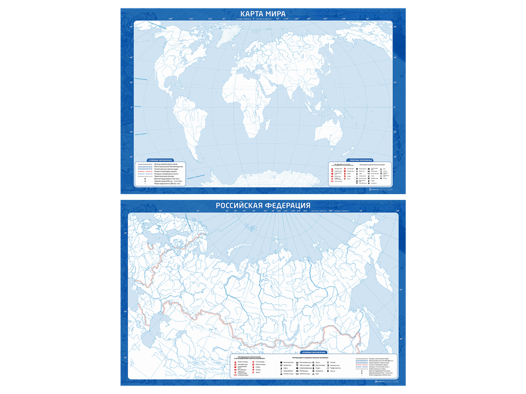 Фрагмент (демонстрационный) маркерный (двухсторонний) "Карта мира и Российской Федерации" (немая) с комплектом тематических магнитов