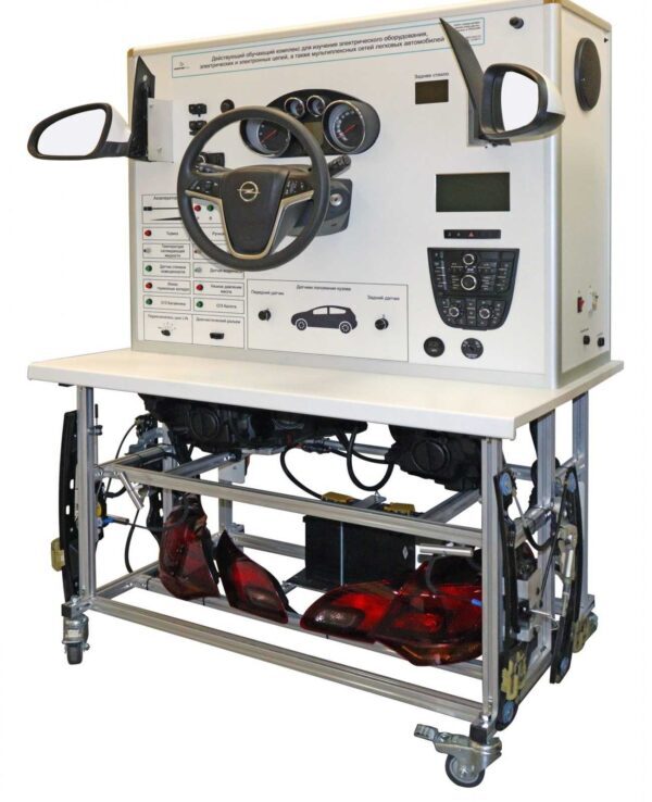 Обучающий комплекс, включает в свой состав реальные элементы электрического и электронного оборудования современного автомобиля, а также конструкторские разработки производителя учебного оборудования, выполненного в виде моделирующей панели и панели управления. Все элементы комплекса функционируют в тех же режимах, что и на реальном автомобиле. Обучающий комплекс представляет собой каркасный корпус из алюминиевой рамы на колесах.
