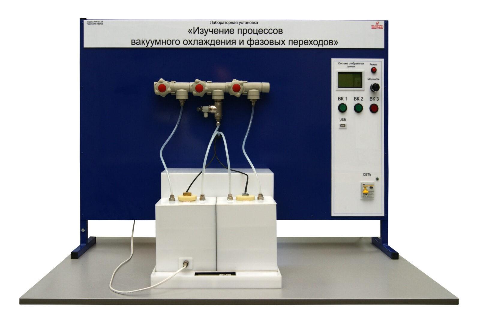 Учебная лабораторная установка «Изучение процессов вакуумного охлаждения и фазовых переходов» предназначена для проведения лабораторных работ по курсам изучения дисциплин «Физика».