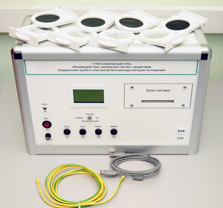 Учебно-моделирующий стенд «Взаимодействие у- частиц с веществом. Определение пробега электронов бета распада методом поглощения», предназначен для проведения лабораторных работ с учащимися по курсу ядерная физика.